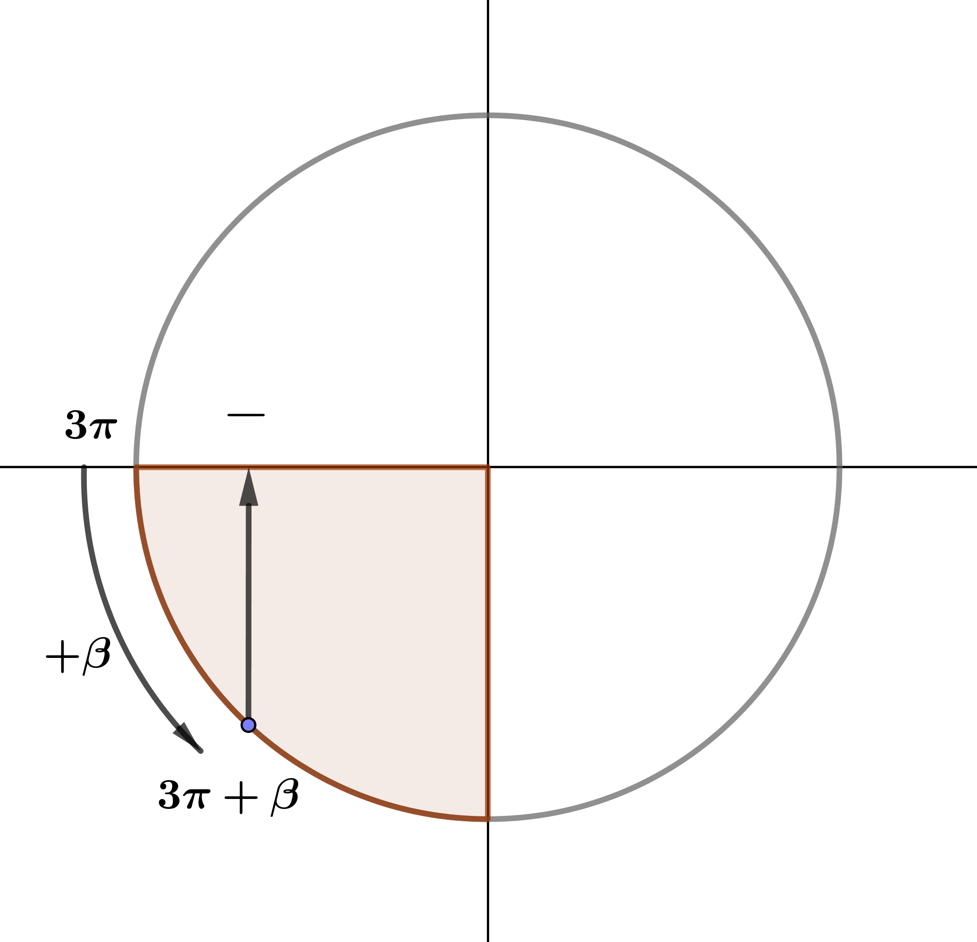 - \(\displaystyle \cos(\beta + 3\pi)= \cos(3\pi+\beta)=-\cos\beta\)