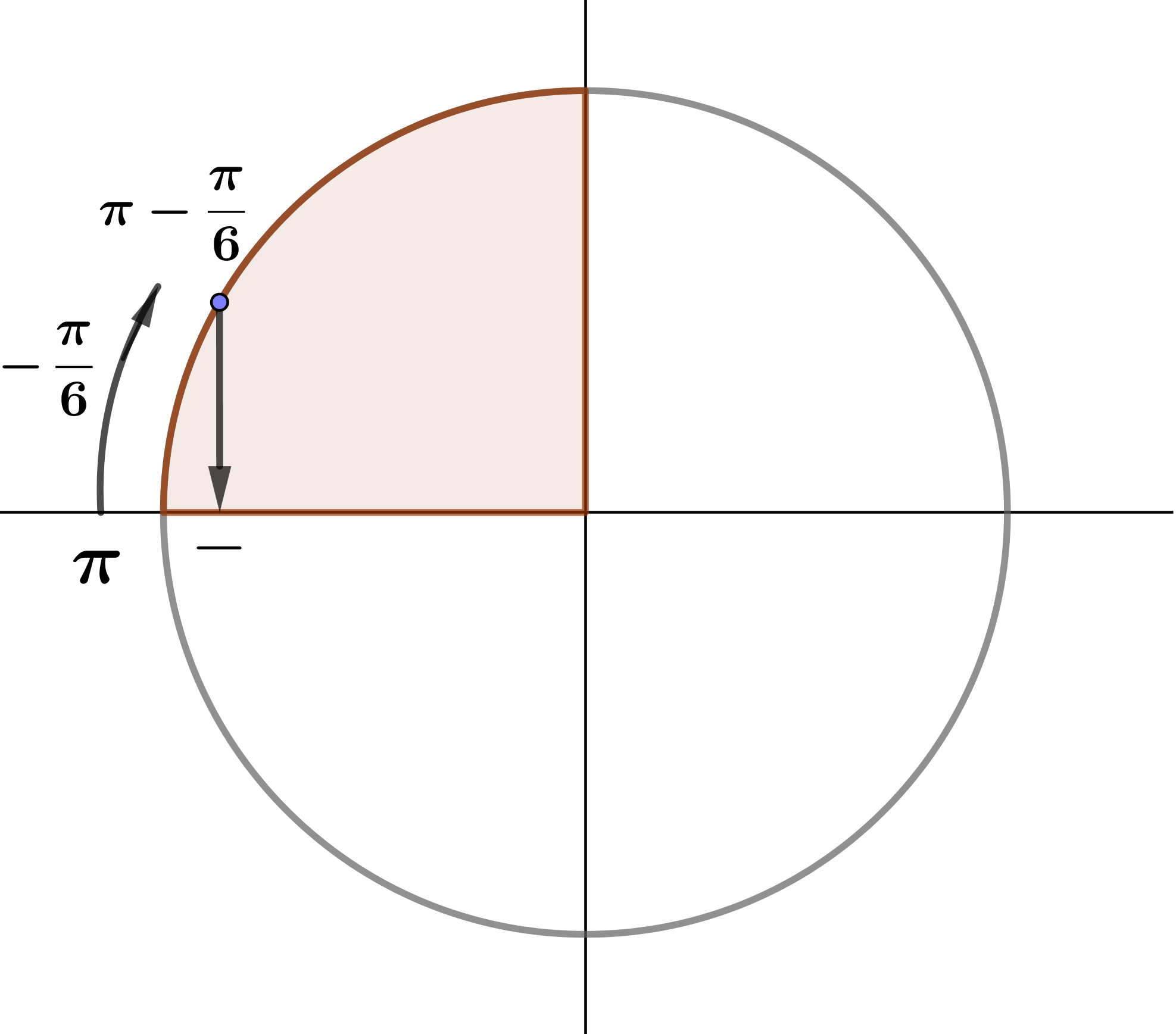 Значит, угол \(\displaystyle \pi-\frac{\pi}{6} \) находится во второй четверти.