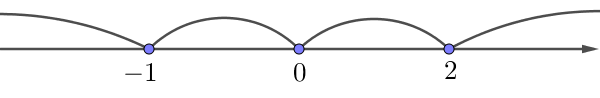 \(\displaystyle x=0{\small ,}\) \(\displaystyle x ={-1}{\small }\) и \(\displaystyle x=2{\small.}\)