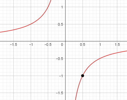 Демек, бұл нүкте \(\displaystyle y=-\frac{1}{2x}{\small }\) функция графигінде жатпайды.