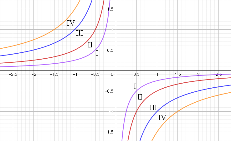 Осылайша, \(\displaystyle \rm IV\) гипербола \(\displaystyle y=-\frac{1}{2x}{\small }\) функциясының графигі емес.