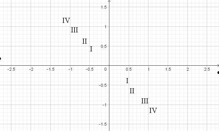 Графикте \(\displaystyle \rm I\) гиперболасы \(\displaystyle (0{,}5;\, -0{,}5){\small }\) координаттары бар нүкте арқылы өтетінін көруге болады:
