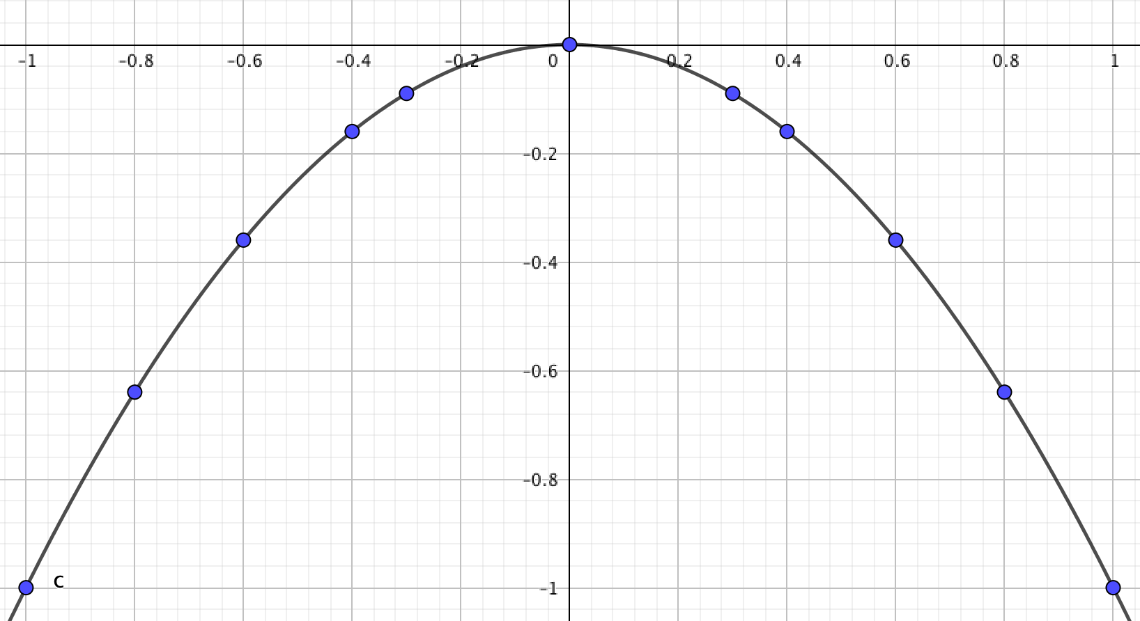 Построение графика квадратичной функция \(\displaystyle y=-x^2{\small :}\) на отрезке \(\displaystyle [-1;\, 1] {\small .}\)