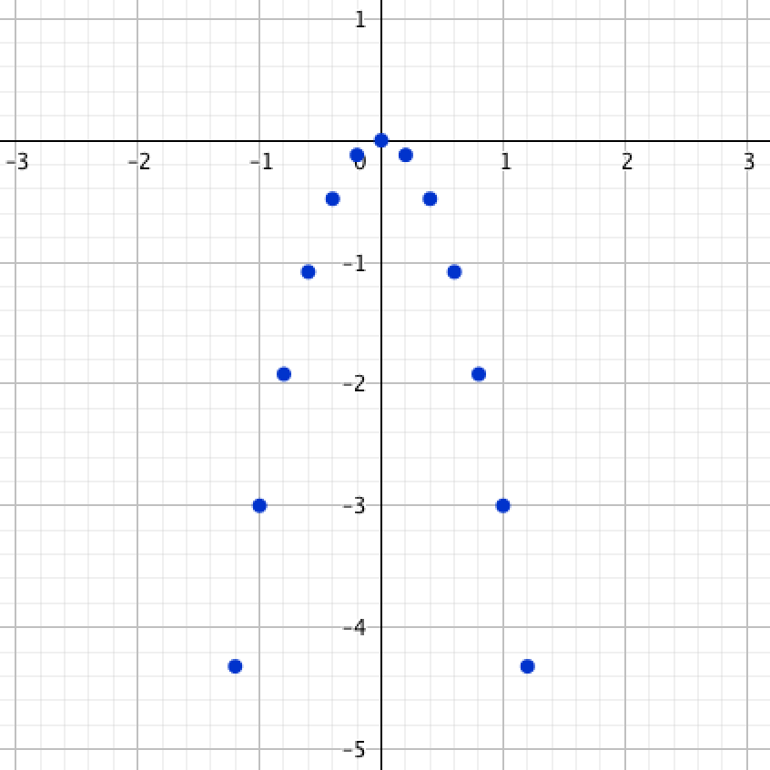 \(\displaystyle (0{,}2;\, -0{,}12),\, (0{,}4;\, -0{,}48),\, (0{,}6;\, -1{,}08),\, (0{,}8;\, -1{,}92),\, (1;\, -3)\)
