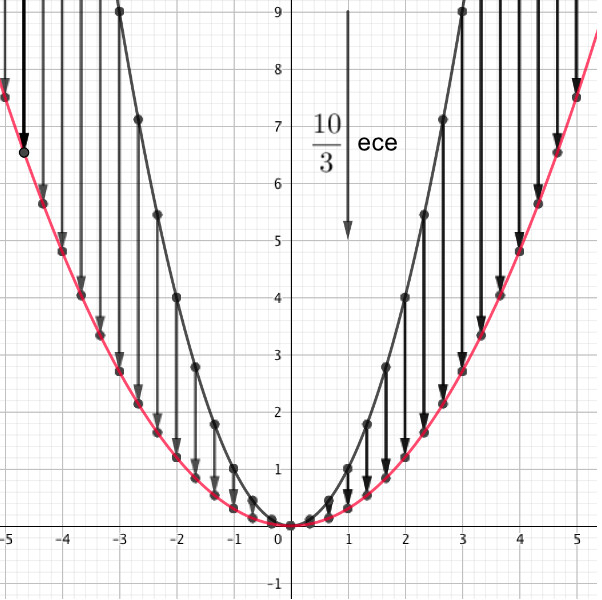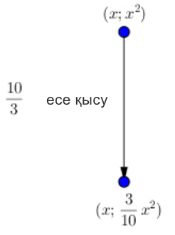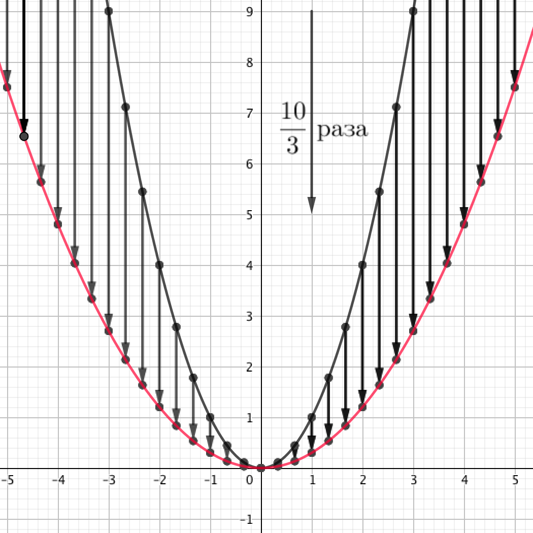 Возьмем одну точку вида \(\displaystyle (x;\, x^2)\) и сожмем ее в \(\displaystyle \frac{10}{3}\) раза вдоль оси \(\displaystyle \rm OY{\small ,} \) то есть уменьшим значение ординаты в \(\displaystyle \frac{10}{3}\) раза.