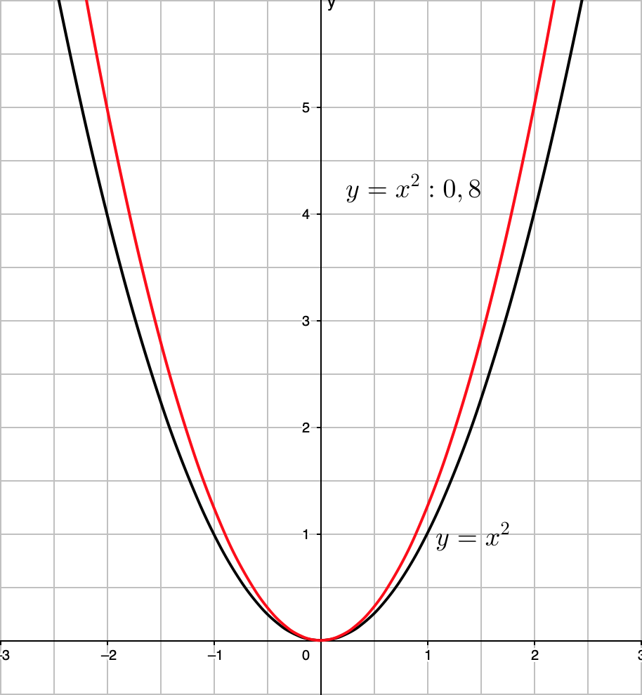 График квадратичной функции \(\displaystyle y=\frac{ x^2}{0{,}8}\) получен из квадратичной функции \(\displaystyle y=x^2\)