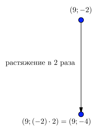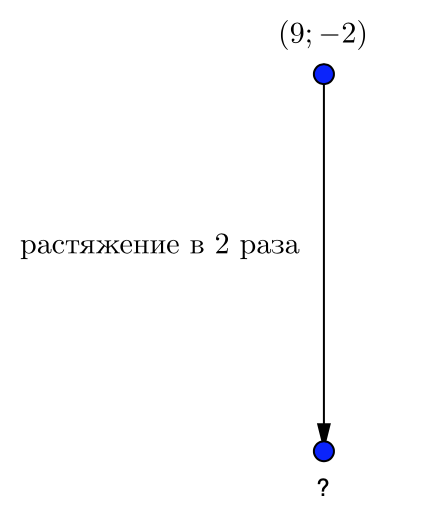 \(\displaystyle (9;\, -2){\small ,}\) после растяжения вдоль оси \(\displaystyle \rm OY\) вниз в \(\displaystyle 2\) раза, означает умножение координаты \(\displaystyle y\) (ординаты точки) на \(\displaystyle 2{\small .}\)