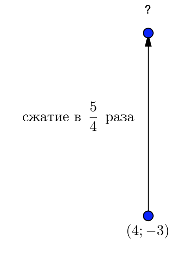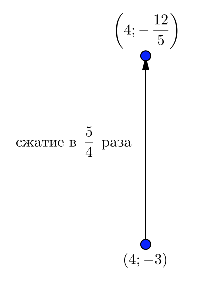 Найдите координаты точки \(\displaystyle (4;\, -3)\) после сжатия вдоль оси \(\displaystyle \rm OY\) в \(\displaystyle \frac{5}{4}\) раза.