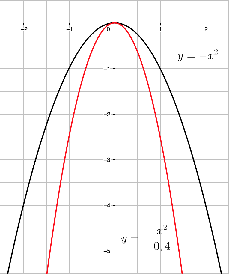 График квадратичной функции \(\displaystyle y=-\frac{ x^2}{0{,}4}\) получен из квадратичной функции \(\displaystyle y=-x^2\)