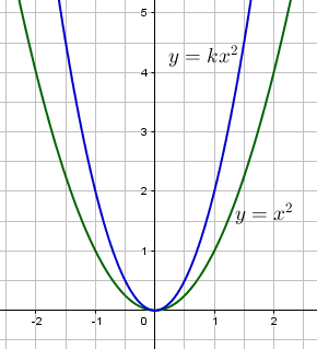 Если \(\displaystyle \color{blue}{ k}>1{ \small ,}\) то точка с координатами \(\displaystyle (x_0;\,\color{blue}{ k}\cdot x_0^2) \) лежит выше точки с координатами \(\displaystyle (x_0; x_0^2), \) так как \(\displaystyle k\cdot x_0^2>x_0^2{\small .}\)