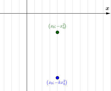 Таким образом, ВСЕ точки вида \(\displaystyle \color{blue}{ (x_0;\,-kx_0^2)} \) (кроме точки \(\displaystyle (0;0)\)) лежат ниже точек с координатами вида \(\displaystyle \color{green}{ (x_0; -x_0^2)}{ \small :} \)