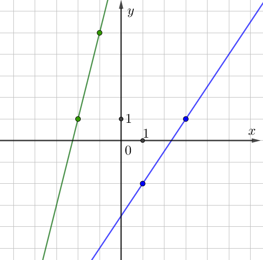 \(\displaystyle \left\{\begin{aligned}\color{blue}{1}&=k\cdot \color{blue}{3}+ b{ \small ,}\\\color{blue}{-2}&=k\cdot \color{blue}{1}+ b{ \small ;}\end{aligned}\right. \)