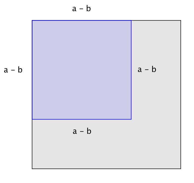 Площадь квадрата со стороной \(\displaystyle a - b\) равна \(\displaystyle (a-b\,)^2\):