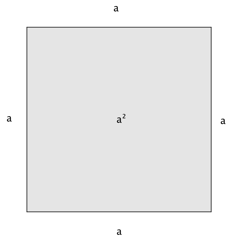 Площадь квадрата со стороной \(\displaystyle a\) равна \(\displaystyle a^{\,2}\):