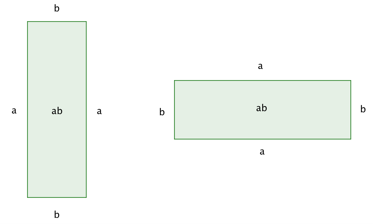 Площадь каждого из прямоугольков со сторонами \(\displaystyle a\) и \(\displaystyle b\) равна \(\displaystyle ab\):