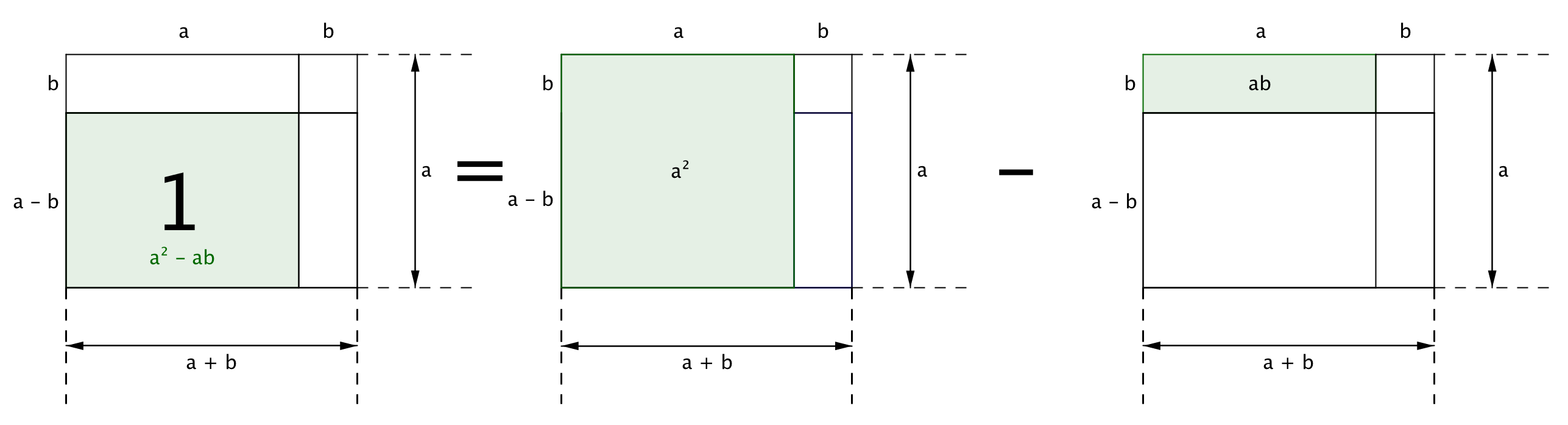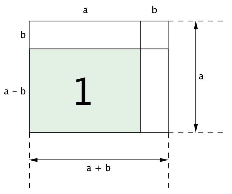 Площадь прямоугольника "1" равна разности площадей квадрата со стороной \(\displaystyle a\) и прямоугольника со сторонами \(\displaystyle a\) и \(\displaystyle b:\)
