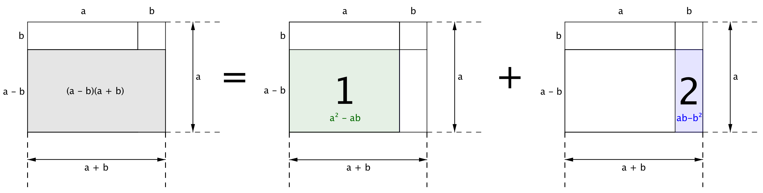 \(\displaystyle (a-b\,)(a+b\,)=(a^2-ab\,)+(ab-b^2\,).\)