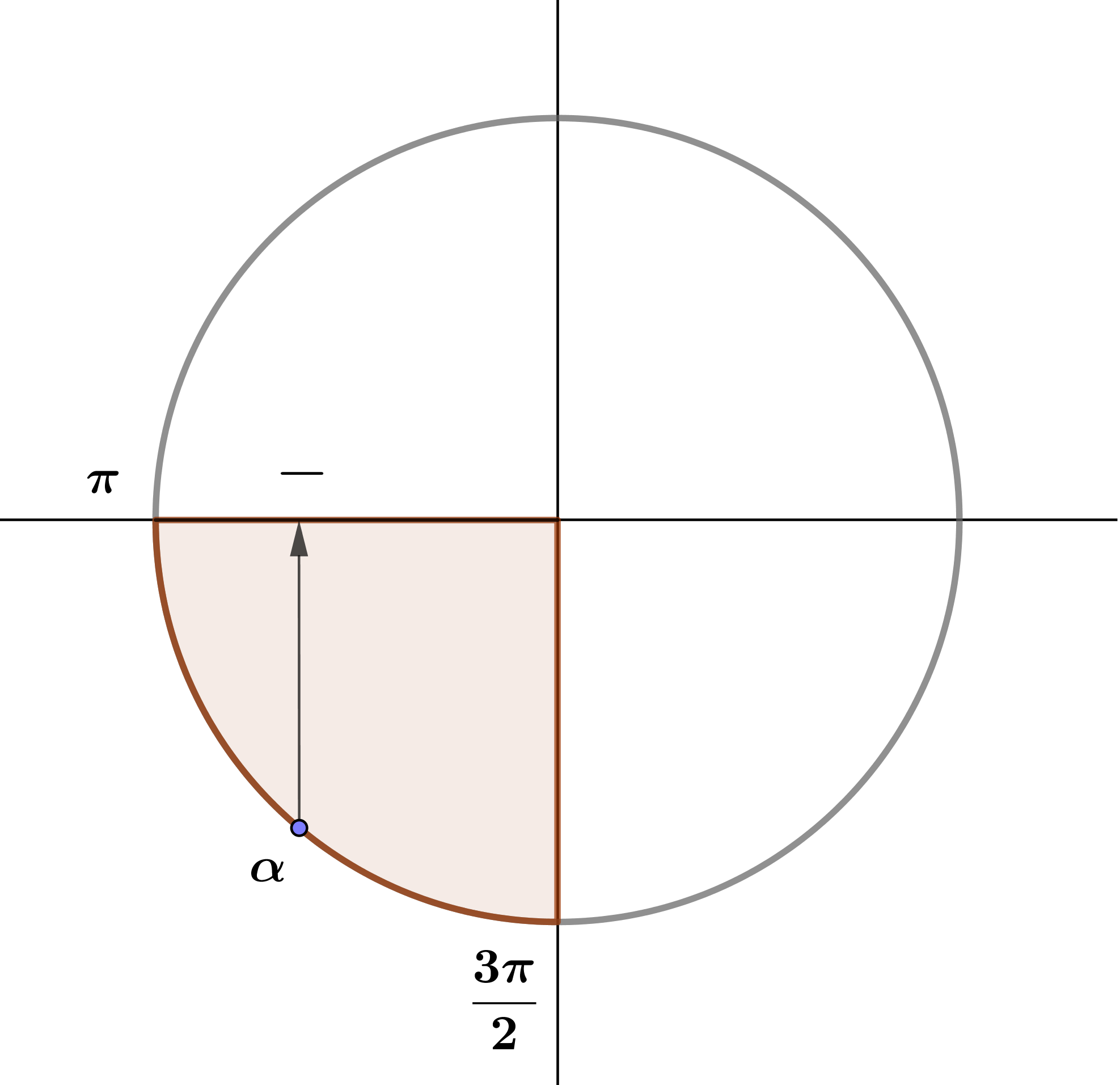 По условию \(\displaystyle \alpha \in \left( \pi;\frac{3\pi}{2} \right){\small.}\)