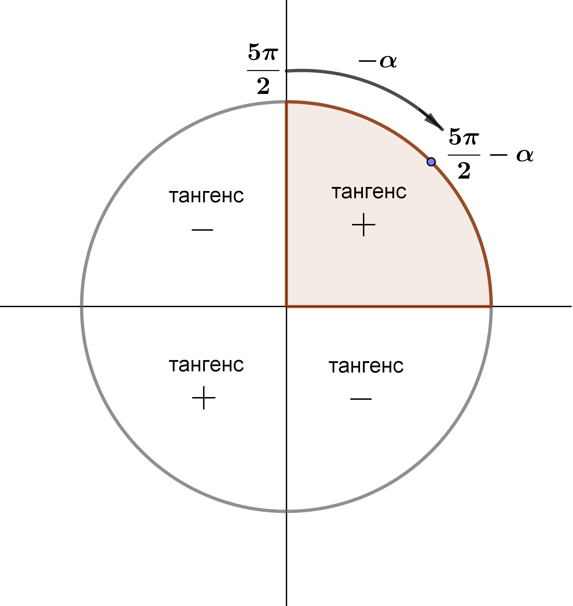 Определим, в какой четверти находится угол \(\displaystyle \frac{5\pi}{2} - \alpha \) (считая, что \(\displaystyle 0<\alpha<\frac{\pi}{2} \) ):
