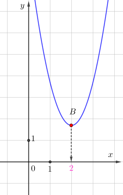 Заметим, что графиком функции является парабола, а точка \(\displaystyle B \) с абсциссой \(\displaystyle \color{magenta}{x_0=2}\)  – её вершина.