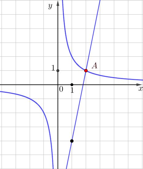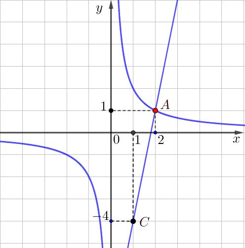 1. Найдем неизвестный коэффициент \(\displaystyle k\) из уравнения гиперболы \(\displaystyle f\left(x\right)=\frac{k}{x}{ \small .}\)
