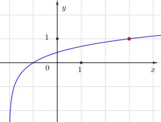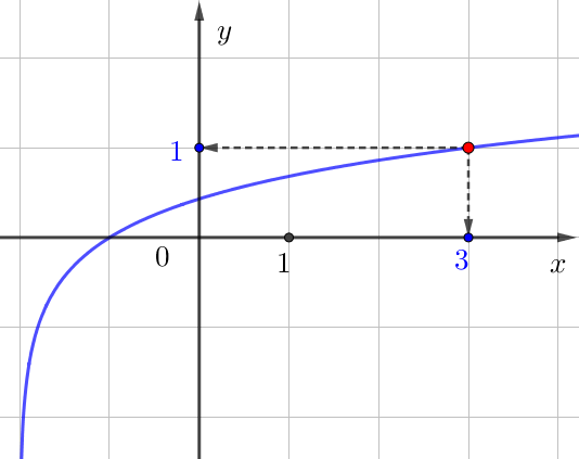 Заметим, что на графике функции \(\displaystyle f(x)=\log _{5}(x+b)\) отмечена точка с координатами \(\displaystyle (\color{blue}3;\color{blue}1){ \small .}\)