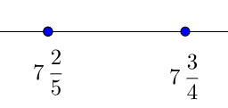Тогда \(\displaystyle 7\frac{2}{5}<7\frac{3}{4}{\small . } \) Оформим это в виде рисунка: