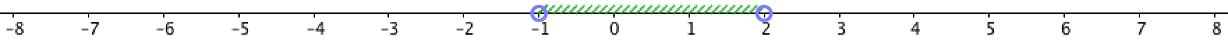 \(\displaystyle x \in (-1{\small ; }\,2){\small . } \)