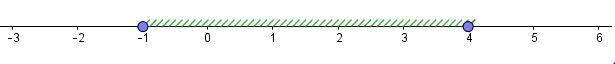 Ответ: \(\displaystyle -1\le x\le 4{\small . } \)