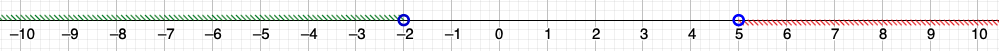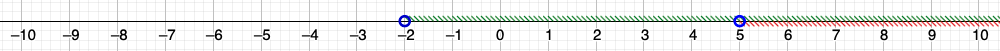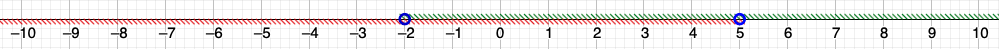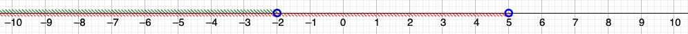 \(\displaystyle \left\{ \begin{aligned} x&<5{\small , }\\x&>-2{\small . } \end{aligned} \right. \)