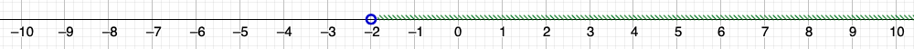 Неравенство  \(\displaystyle \color{green}{x>-2}\) соответствует множеству точек на прямой: