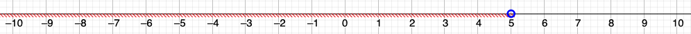 Неравенство \(\displaystyle \color{red}{x<5}\) соответствует множеству точек на прямой: