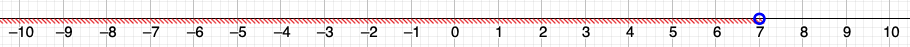 \(\displaystyle \left\{ \begin{aligned} x&<7{\small , }\\x&<-4{\small . } \end{aligned} \right. \)
