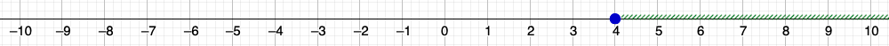 Неравенство \(\displaystyle \color{green}{x\ge 4}\) соответствует множеству точек на прямой:
