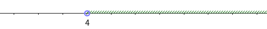 Неравенство \(\displaystyle x > 4\) соответствует множеству точек на прямой: