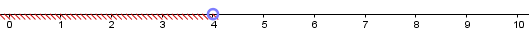 Неравенство \(\displaystyle x< 4\) соответствует множеству точек на прямой: