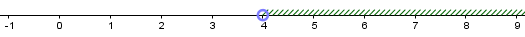 Неравенство \(\displaystyle x>4\) соответствует множеству точек на прямой: