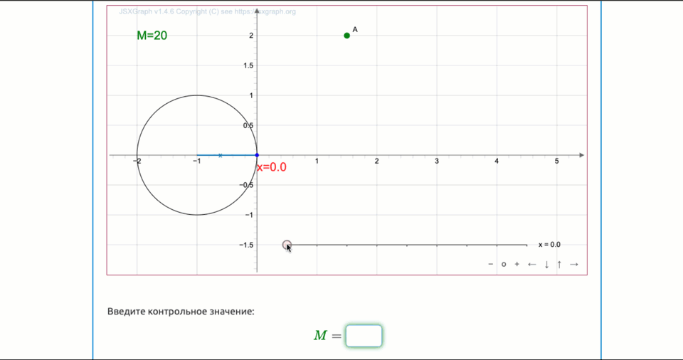 Далее перетаскиваем точку \(\displaystyle A\) в найденную точку и получаем \(\displaystyle M=7{\small.}\)