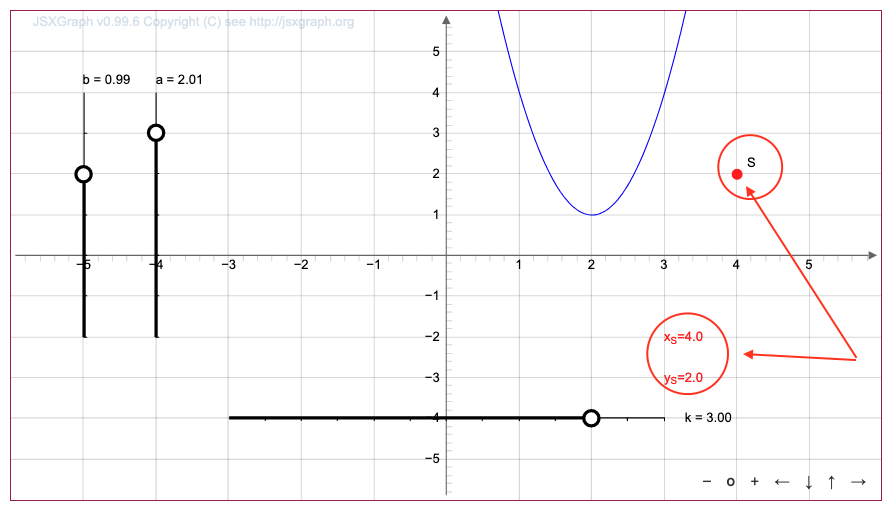 Вершина параболы, заданной уравнением \(\displaystyle y=k(x-a)^2+b\)