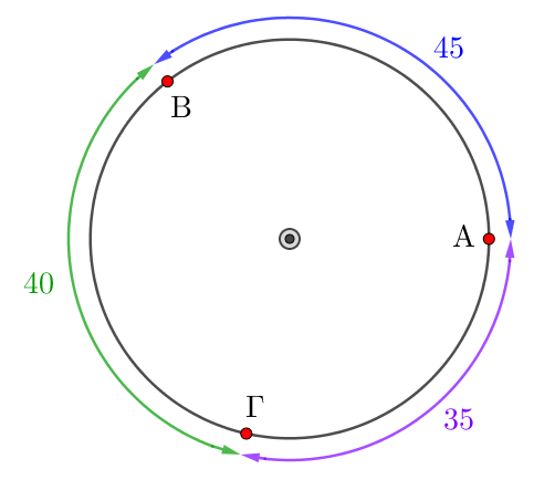 Тогда эти дуги \(\displaystyle АВ\small,\) \(\displaystyle ВГ\) и \(\displaystyle ГА\) образуют окружность: