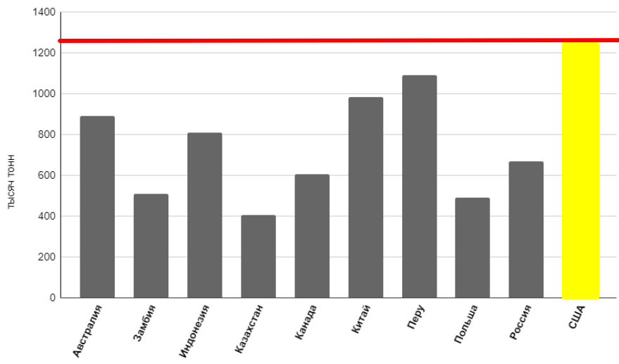 Выделенный столбец соответствует США.