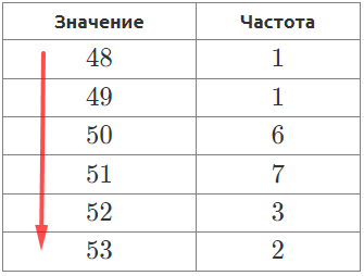 В таблице частот данные возрастают сверху вниз