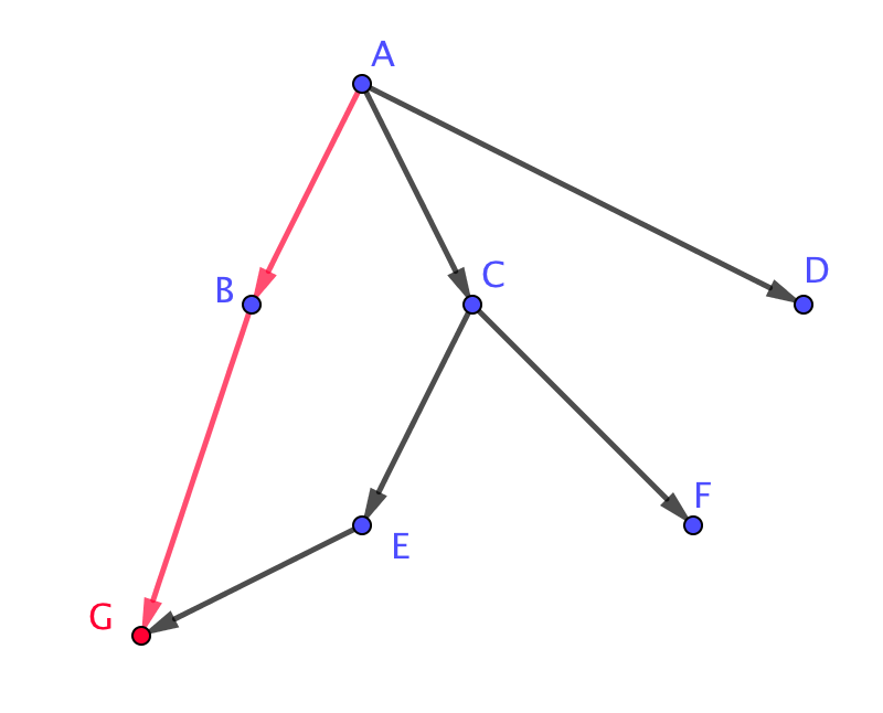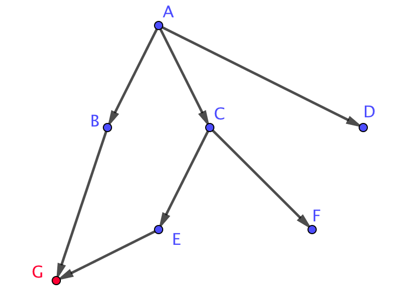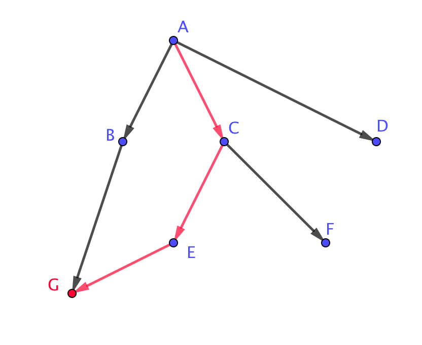 | \(\displaystyle A \rightarrow B \rightarrow G\) | \(\displaystyle A \rightarrow С \rightarrow Е \rightarrow G\) |
