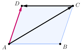 \(\displaystyle \overrightarrow {AC}+\overrightarrow {CD}=\color{#CC0066}{\overrightarrow {AD}}.\)
