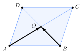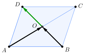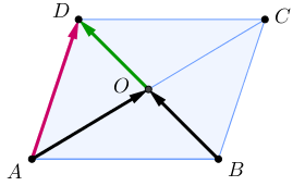 \(\displaystyle \overrightarrow {AO}+\overrightarrow {BO}=\overrightarrow {AO}+\color{#009900}{\overrightarrow {OD}}=\color{#CC0066}{\overrightarrow {AD}}.\)