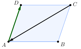 \(\displaystyle \color{#009900}{\overrightarrow {AD}}=-\overrightarrow {DA},\)