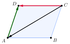 \(\displaystyle \overrightarrow {CA}-\overrightarrow {DA}=\overrightarrow {CA}+\color{#009900}{\overrightarrow {AD}}.\)