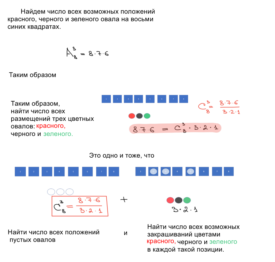 Принципы вывода формулы на примере сочетаний из восьми по три: