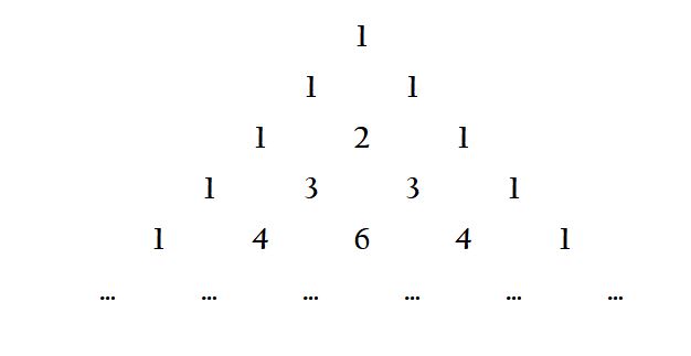 - все остальные элементы равны сумме двух расположенных над ними чисел.